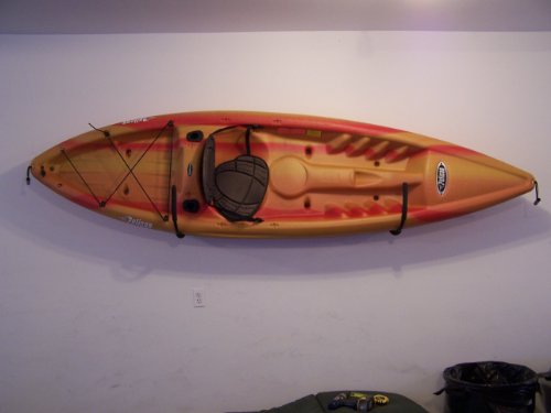 Universal Wall Mounted Kayak Racks are designed to store kayaks on their side on your wall, saving you valuable floor space. (Kayak not included)